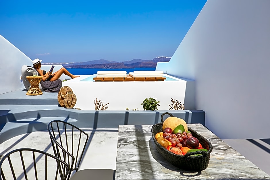 Sophisticated Suite that offers a panorama of the Aegean Sea and the Iconic Caldera. It features a spacious terrace with its own Private Heated Infinity Pool with hydromassage jets.